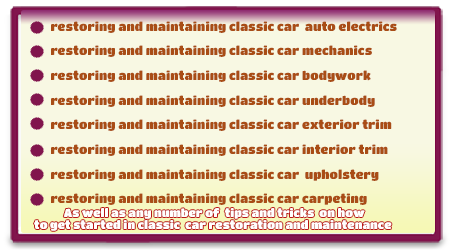 As well providing a comprehensive glossary of all the classic cars produced during that exciting era and the people who pioneered their development during the exciting decades of the Fifties and Sixties, we also proudly present a vast collection of articles giving practical advise on how to restore and maintain classic cars of the period.