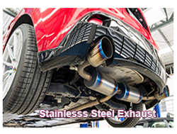 STAINLESS-STEEL EXHAUST SYSTEM: Describes a system that is a hard-wearing alternative to steel although considerably more expensive system.