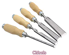 CHISEL: Describes a thick pencil shaped tool with a sharp flat end like a blade screwdriver. When a hammer strikes the blunt end, it forces the blade end into the metal to mark it or even cut through it.