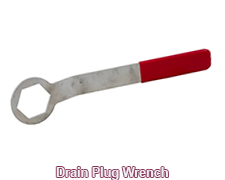 DRAIN PLUG WRENCH: Describes a tool used for removing and tightening drain plugs on transmissions and engine sumps.