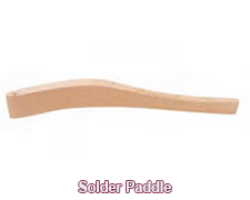 SOLDER PADDLE: Describes a wooden tool made of either maple or beech, designed to spread body solder over the surface of a metal panel.