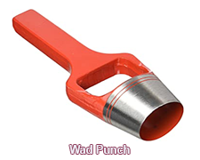 WAD PUNCH: Describes a tool with a round cutting edge used for cutting holes in gaskets or other soft materials.