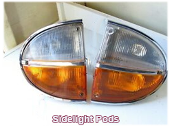 SIDELIGHT POD: Describes a design feature of some Fifties and Sixties cars whose side lights were incorporated into a separate sheet metal moulding that sat on the top of the front fenders.