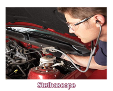 STETHOSCOPE: Describes a device similar to that used by doctors that helps the detection of abnormal engine noises.