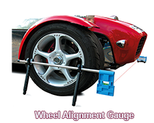 WHEEL ALIGNMENT GAUGE: Describes a type of gauge used to measure the distance between the rims of a vehicle's front wheels.