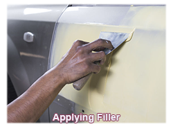FILLER: Describes a type of paste usually with a polyester base that when mixed with a hardener forms a surface which can be sanded smooth making it suitable for repairs to dented or rusted bodywork.