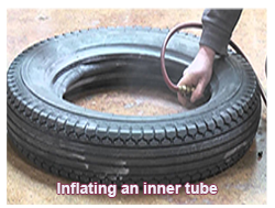 INNER TUBE: Describes a doughnut-shaped latex air chamber inserted into a non-tubeless tire to hold pressurised air.