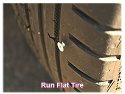 RUN-FLAT TIRE: Describes a type of tire that can run for a certain length of time whilst uninflated; run-flat tires are designed to operate effectively with or without air, although providing acceptable handling qualities deflated and first-class handling when inflated.