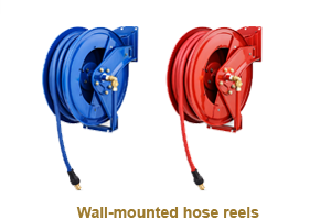 Day-to-day usability of a pneumatically driven system is greatly improved by >wall-mounted hose reels, which keep air lines neatly stored when not in use and allow hoses to be pulled out only as far as required, reducing clutter, preventing hose damage and speeding up tool changes. In a busy restoration and maintenance workshop, hose reels play an important role in worker safety by keeping floors clear of tangled air lines and reducing wear on fittings.
