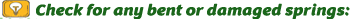 Closely examine the springs for any signs of damage or contortion,. If a vehicle droops or sags on one side or corner, it’s an almost certain sign that the coil springs are damaged. The drooping or sagging is usually caused by one side of the vehicle being overloaded on a regular basis. The vehicle may also sway more in turns or bounce higher than usual. Damaged or bent spring are a common cause of uneven tire wear.