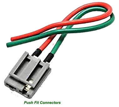 Push-fit connectors can be attached to their respective wires not only by soldering and also crimping or held together by friction.