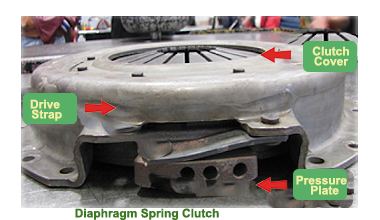 The diaphragm spring clutch like the conventional spring clutch is a circular, almost cone shaped. Its spring features radial fingers that exert pressure on the pressure plate while the pressure plate serves to press the clutch disc against the flywheel, thereby facilitating power gearbox engagement.