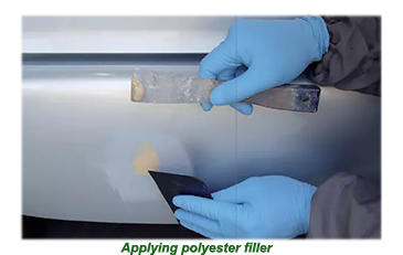 When the dent is filled, a certain level of filler must be allowed to jut out enough to ensure it can be "sanded down" to meet the level of the bordering bodywork.