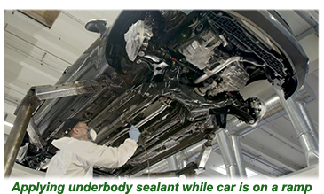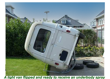 The ideal situation is to apply the underbody when the vehicle is up on a ramp using a spray gun.
