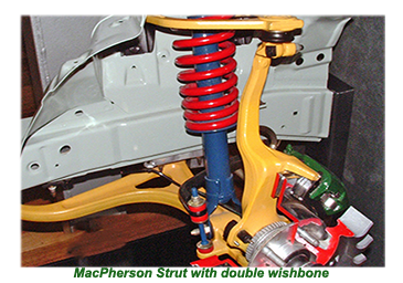 Widely fitted in most vehicles' front suspension since, the Macpherson strut utilises a telescopic damper as the upper steering pivot.