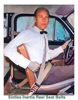 The main drawback with fixed seatbelts were that they were costly. Towards the end of the Sixties, "inertia-reel" seatbelts began to make an appearance, which were both inexpensive but ensured that the driver and passengers were allowed sufficient freedom of movement during their journey.