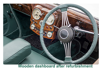The costs for restoring vehicles with wooden dashboards and trims will be much higher than those with plastic, especially if the wooden trim is veneered and not solid wood. Veneers are liable to crack and become discoloured over the years and, even worse, exposed to damp conditions while in storage.