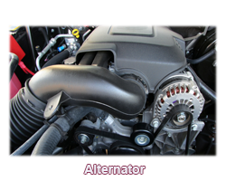 ALTERNATOR (ALT): Describes a type of device that produces alternating current (AC) by converting an engine's mechanical energy into alternating electrical current at all engine speeds. The AC must be rectified (converted from AC to direct-current (DC) by using diodes before reaching the vehicle's electrical system. efficient especially at idle. Options such as air conditioning forced the use of alternators over generators.