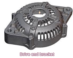 DRIVE END BRACKET: Describes the cover which houses the drive end of an alternator or generator.