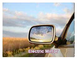 ELECTRIC MIRROR: Describes an external door mirror controlled by an electric motor and operated by a switch inside the car.