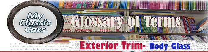BODY GLASS: Describes the windshield, backlight (rear window), and side windows of a vehicle