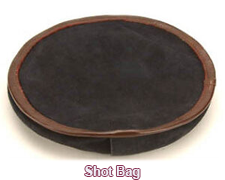 SHOT BAG: Describes a type of bag usually made of robust leather and very fine lead shot over which metal is shaped using hammers.