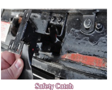 Describes the secondary latch that is usually located under the front edge of the bonnet, designed to prevent accidental release of the bonnet if the central cable-operated hood lock is erroneously activated.