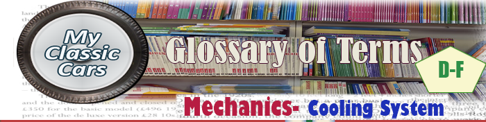 FAN CLUTCH: Describes a viscous (fluid) drive coupling device connected to the centre of the fan that will allow variable engine fan speeds relating to engine speeds according to the engine temperature through a thermostat