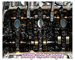 OIL SLUDGE: Describes the thick deposit of dirt and the products of combustion, partial combustion and oxidation of the oil that builds up in the oil pan and elsewhere.