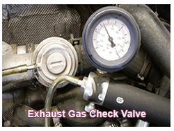EXHAUST GAS CHECK VALVE(EGC): Describes a device that allows air in an injection system to enter the exhaust manifold while preventing a reverse flow in the event of irregular operation in other components