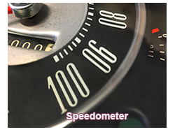 ANALOGUE SPEEDOMETER: Describes a type of speedometer that displays the speed that the vehicle is travelling by way of a needle on the dial of a gauge.