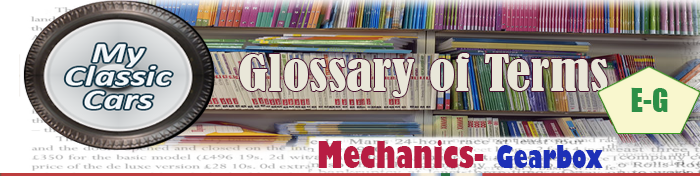 GEARBOX: Describes the device consisting of an input shaft, a system of gears, and an output shaft that multiplies engine torque. A manual transmission consists of a clutch assembly plus a gearbox while automatic transmission generally consists of a torque converter plus gearbox.