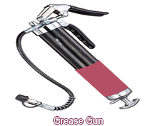< GREASE GUN: Describes a small, hand-operated pump loaded with grease and used for lubricating the grease fittings on a vehicle.