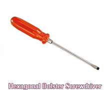 HEXAGONAL BOLSTER: Describes a tool that allows a screwdriver to be turned with a wrench for extra torque to loosen tight screws.