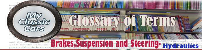 HYDRAULICS: Describes the procedure in which a quantity of water, oil or any other fluid is forced along one end of a line; due to these fluids being incompressible, they are forced into a smaller cylinder, thus multiplying the force levels. Â Hydraulics are used in power steering, clutches, and brake systems.