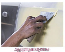 Describes a paste used to fill minor imperfections in a car body panel. Body filler rapidly hardens and is shaped to fit, meaning that it can also be painted to match the rest of the vehicle.