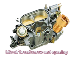 IDLE AIR BLEED SCREW: Describes a screw found on some carburettors that allows air to enter when the throttle is closed, allowing the engine to idle while preventing the formation of deposits in the throttle area.