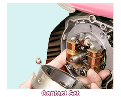 CONTACT SET: Describes a set of replacement parts consisting of breaker points and possibly breaker plate and condenser.