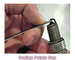 GAPPING: Describes the procedure of adjusting the distance between the points of a contact breaker.