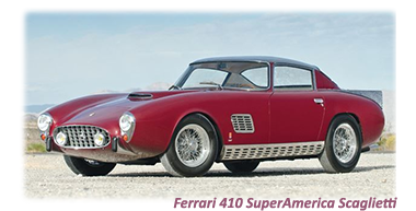 >Among the most high profile 410 owners was Prince Bernhard of the Netherlands, Italian designer legend Pinin farina and French industrialist and avid Ferrari collector Michel Paul-Cavallier.