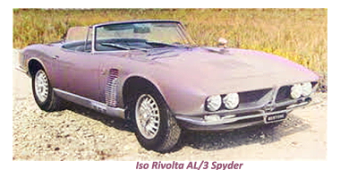 Although in their early years, Iso focused their efforts in producing refrigerators they were best known in the post war years for producing that produced by motorcycles ,later bubble cars and finally performance sports touring cars ,remaining active until the early Seventies.