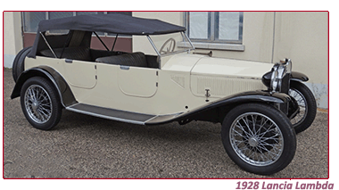 inchild of rising Italian designer Giovanni Bertone, the Lancia Lambda not only looked imposing sitting on a ten foot ( three meters) wheelbase it also boasted extraordinary handling thanks to its in-house developed independent front suspension and stress-bearing body.
