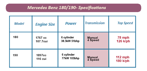 The Mercedes-Benz 190 was the first model from the Stuttgart auto giant to have its four-cylinder engine fitted to have overhead valves with an overhead camshaft.