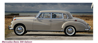 The 300 series, undoubtedly the " top of the range" for Mercedes in the Fifties stood out for the massive chrome mouldings around the headlamps, with separately-mounted auxiliary lights above the bumper as much as for its modernistic one-piece curved windshield.