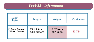 Apart from the windscreen change the overall appearance of the Saab 93 was similar to the Type 92, apart from a modified nose, and a slightly flatter front panel.