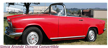 In October 1957, Simca launched two new variations of the Aronde range- a two-seater cabriolet, labelled the Aronde Oceane and the Plein Ciel, a 2-seater coupé.
