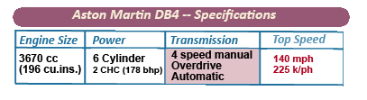 Capable of reaching 0-100 mph (161 km/hour) in a mere 21 seconds, the DB4 was the first UK production car to achieve this level of performance.![]()