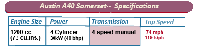 To allow the Somerset to get up and running, Austin simply took the running gear of the A40 Dorset series, which was already regarded as antiquated, and gave it a revamped body design, a cross between the A70 Hereford and the compact A30.