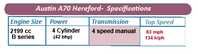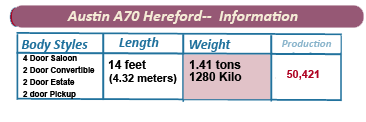 Setting a trend which they would use more successfully in the future, Austin introduced a pickup version of the A70, which shared the same platform as the Countryman estate, even retaining its plush interior.Despite the options available, sales of the Austin A70 Hereford were disappointing, with just over 50,000 produced at Longbridge,before the model was discontinued to be replaced by the A90 Westminster.
