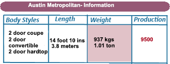 Around 9,500 Austin Metropolitans were sold during its seven-year production run. Far from being a best seller, Metropolitans did find a comfortable niche among the young and upwardly mobile generation of the early Fifties.